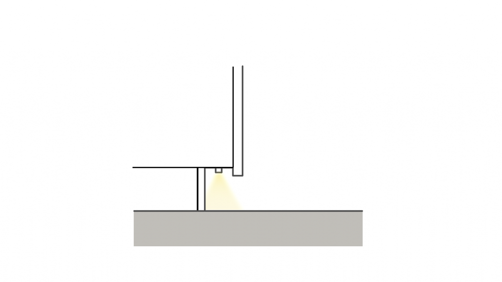 Focus the light more on the floor and less on the toe kick itself. If the floor is polished or highly reflective, select the Architectural Satin Lens option for maximum diffusion.